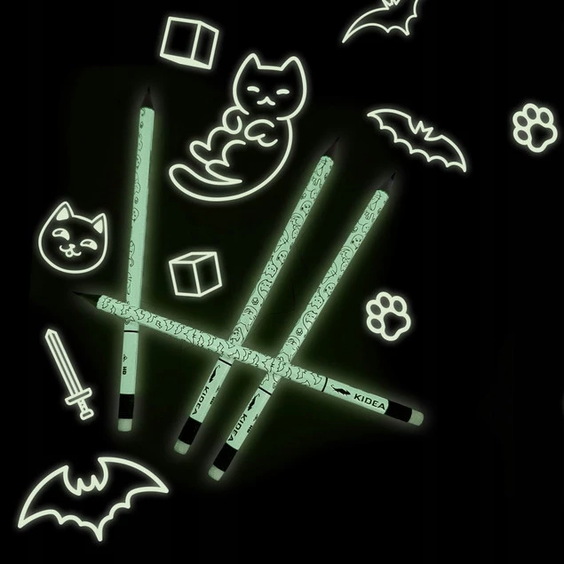 Różnorodne, zabawne wzory to nie jedyna wyjątkowa cecha tych niezwykłych ołówków – w ciemnym pomieszczeniu świecą one wyraźnym blaskiem!