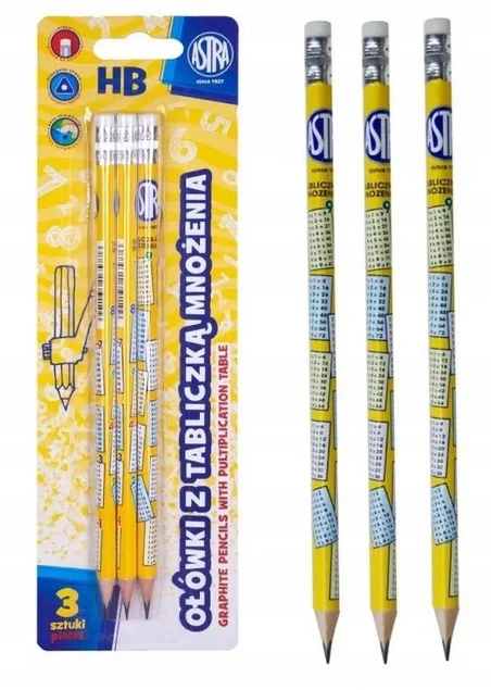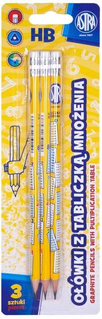 Ołówek z TABLICZKĄ MNOŻENIA Ołówki 3 Sztuki Astra