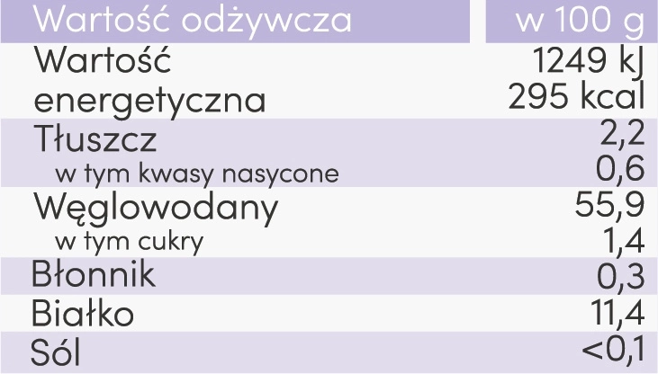 Kulka z amarantusem – gryka (35%), grys kukurydziany (34,85%), amarantus (20%), kasza jaglana (10%), substancja słodząca: glikozydy stewiolowe (naturalny ekstrakt ze stewii) (0,15%).