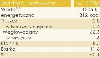 Orkiszowe: ekologiczna mąka pełnoziarnista orkiszowa (84,70%), Ryż (15,0%), substancja słodząca: glikozydy stewiolowe (naturalny ekstrakt ze stewii) (0,3%).