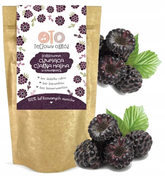 Skład: 100% liofilizowane czarne maliny (w kawałkach - całe)