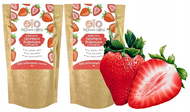 Owoce liofilizowane z OtoLandii można zabrać ze sobą do pracy, do szkoły, na wycieczkę czy spacer z dziećmi na drugie śniadanie lub przekąskę. Zapakowane są w ekologiczne, szczelnie zamykane opakowanie ze struną wielokrotnego użytku. Oferowane truskawki liofilizowane charakteryzuje przystępna cena, dlatego nie wahaj się – spróbuj tego pysznego przysmaku, a gwarantujemy, że wrócisz do nas po kolejne opakowania, a liofilizowana truskawka stanie się Twoją ulubioną przekąską.