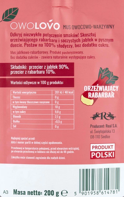 Odkryj niezwykłe połączenie smaków! Soczysty rabarbar w połączeniu z słodkim jabłkiem to prawdziwy smak dzieciństwa. Przekonaj się sam i pozwól sobie na powrót do beztroskiego lata z OWOLOVO!