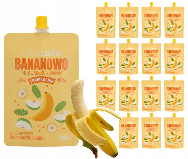 OwoLovo Mus Tropikalny Bananowo Jabłko Banan Dla Dzieci 200g (16 szt.)