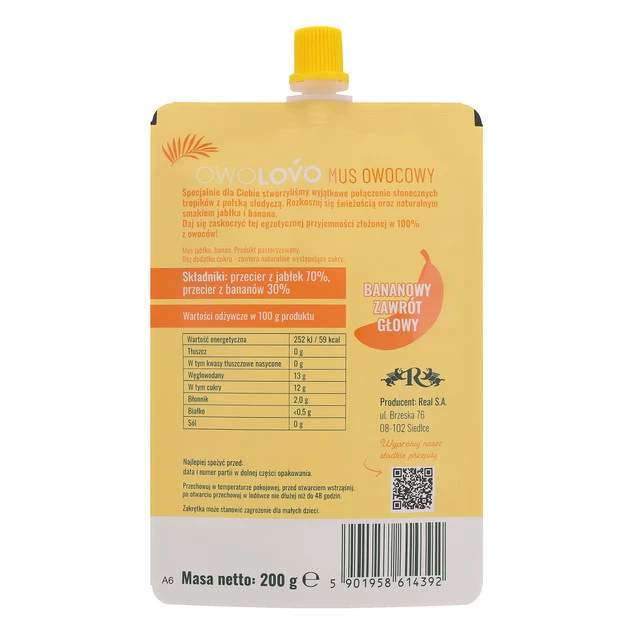 OwoLovo Mus Tropikalny Bananowo Jabłko Banan Dla Dzieci 200g