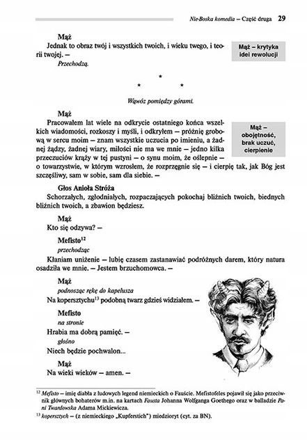 Wydanie Nie-Boskiej komedii kompletne bez skrótów i cięć w treści. W tym wydaniu znajdziesz odpowiedzi na pytania z podręcznika - „pewniak na teście”, czyli wskazanie zagadnień, które zwykle pojawiają się w pytaniach z danej lektury we wszelkich testach sprawdzających wiedzę, a także w podręcznikach i na klasówkach. Książka zawiera pełen tekst lektury. Na końcu książki zamieszczono opracowanie, w którym znajduje się bardzo szczegółowe streszczenie oraz drugie skrócone, ułatwiające szybkie przygotowanie się przed lekcją. Opracowanie zawiera ponadto plan wydarzeń, wnikliwie wyjaśnioną problematykę oraz szerokie charakterystyki bohaterów.