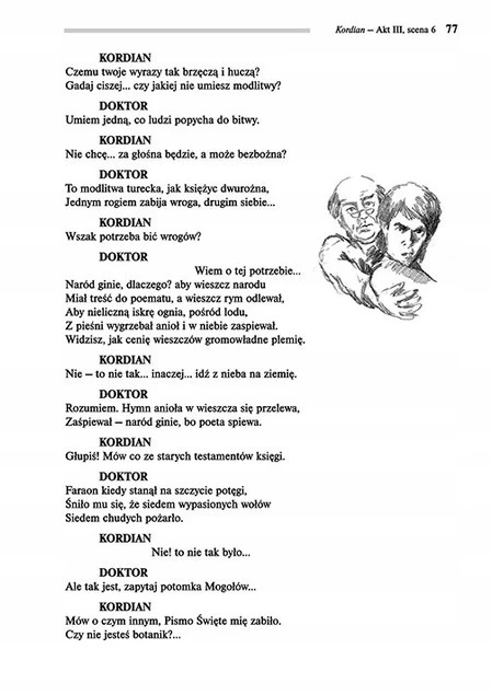 Wydanie Kordiana kompletne bez skrótów i cięć w treści. W tym wydaniu znajdziesz odpowiedzi na pytania z podręcznika - „pewniak na teście”, czyli wskazanie zagadnień, które zwykle pojawiają się w pytaniach z danej lektury we wszelkich testach sprawdzających wiedzę, a także w podręcznikach i na klasówkach. Książka zawiera pełen tekst lektury. Na końcu książki zamieszczono opracowanie, w którym znajduje się bardzo szczegółowe streszczenie oraz drugie skrócone, ułatwiające szybkie przygotowanie się przed lekcją. Opracowanie zawiera ponadto plan wydarzeń, wnikliwie wyjaśnioną problematykę oraz szerokie charakterystyki bohaterów.