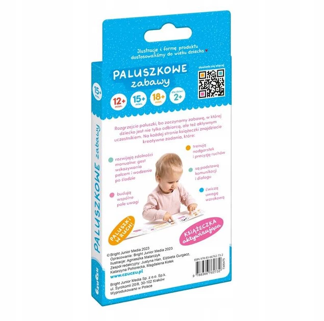Paluszkowe zabawy CzuCzu dla dzieci w wieku 15 mies.+ to książeczka aktywizująca pełna pomysłów na paluszkowe zabawy z maluchem. W tej części doskonalimy małą motorykę, pokazując prawidłowy kierunek wykonywania czynności.