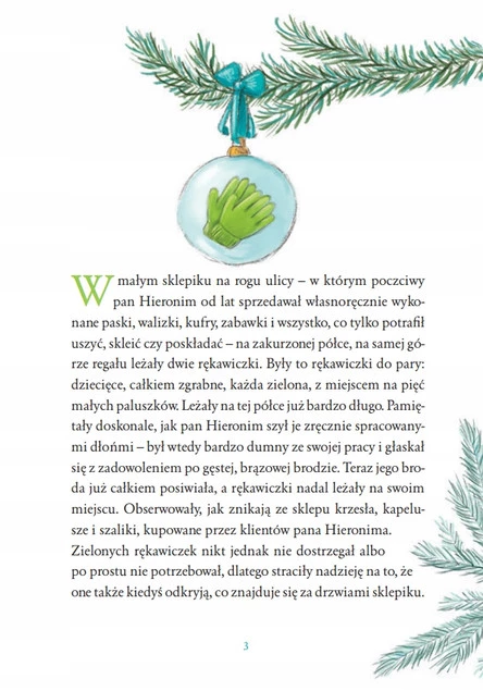 Oto mały Jaś gości w sklepie pana Hieronima, a spotkanie to wnosi radość w ich życie i w życie wełnianych sióstr. Ile rączek i serc ogrzeją zielone rękawiczki? I czy nowi przyjaciele odkryją, jak to cudownie lepić bałwany i głaskać zajączki?