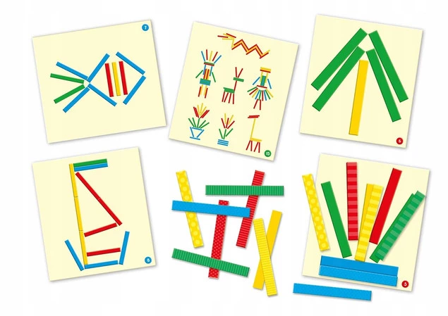 • 40 tekturowych patyczków w czterech kolorach: żółtym, czerwonym, zielonym, niebieskim