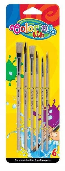 Pędzelki Szkolne Drewniane 6 Sztuk: 12/10/8/6/4/2 3+ Colorino 89415_1