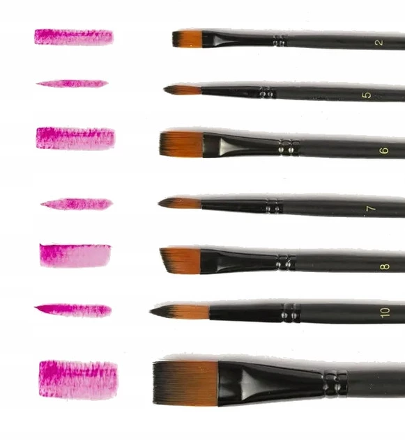 Zestaw wysokiej jakości pędzli z włosiem nylonowym, idealnych do różnych technik malarskich. W komplecie znajduje się 7 pędzli o różnych rozmiarach, co pozwala na precyzyjne i kreatywne tworzenie. Ergonomiczne trzonki zapewniają wygodę użytkowania, a wytrzymałe włosie sprawia, że pędzle są trwałe i łatwe w czyszczeniu. Doskonałe dla dzieci, hobbystów i artystów.