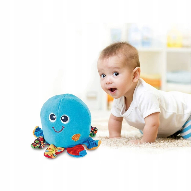 Została wykonana z bezpiecznych dla maluchów materiałów. Jest mięciutka i miła w dotyku, a jej kolory i kształt sprawiają, że dziecko z jeszcze większą radością podąża za zabawką. Ośmiornica ma także brata Kraba; wspólnie gwarantują maluchowi mnóstwo frajdy podczas zabawy!