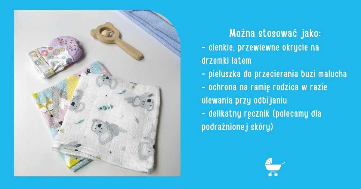 To artykuły dziecięce ze zdrowotnej tkaniny bambusowej 100%. Dzięki naturalnym właściwością antyalergicznym i antybakteryjnym tkanina nie powoduje uczuleń. Jest to ważne dla delikatnej skóry dziecka szczególnie wrażliwej na podrażnienia. Kolorystyka pieluszek jest subtelna i stonowana a tkaniny są miękkie oraz aksamitne w dotyku. Produkt wykonany jest z ogromną starannością, by spełniać najwyższe oczekiwania rodziców i ich pociech.