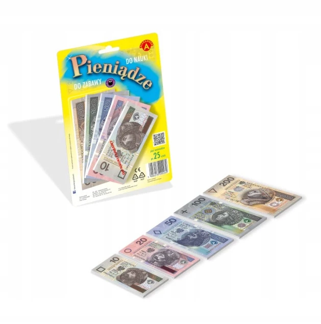Kopie papierowych banknotów to świetna pomoc do nauki liczenia oraz pierwszego oswajania dzieci z pieniędzmi. Zestaw idealnie sprawdza się podczas zabawy w sklep, na zajęciach w przedszkolu i szkole, a także w domu – przy wspólnych zabawach w kupowanie, sprzedawanie i wydawanie reszty.