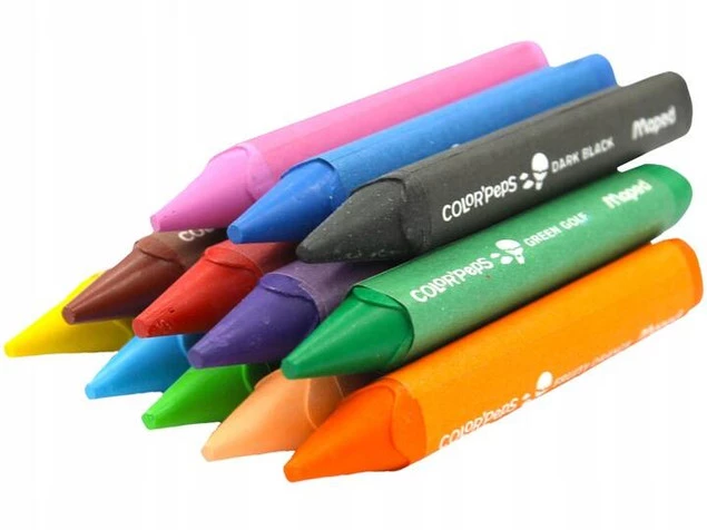 Kredki dla rocznego dziecka mają gruby trójkątny przekrój o średnicy 13 mm, który zapewnia intuicyjnie poprawny chwyt. Wysokiej jakości wosk wpływa na miękkie rysowanie. Mała rączka dziecka bez problemu chwyci kredkę, którą łatwo rysować, bo płynnie przesuwa się po powierzchni papieru.