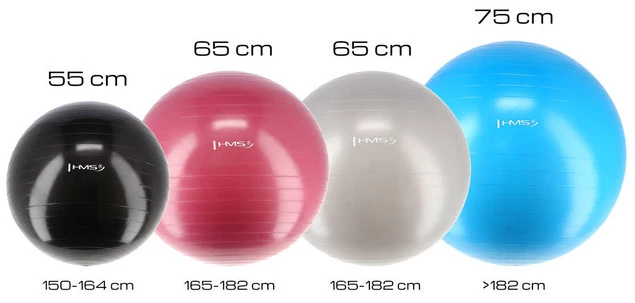 Występują różne rozmiary piłek. Wielkość dopasowujemy do wzrostu osoby ćwiczącej:
