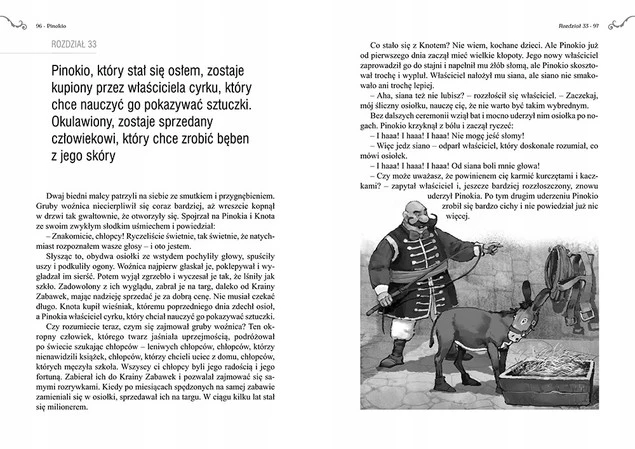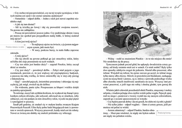 Wydanie Pinokia kompletne bez skrótów i cięć w treści. W tym wydaniu znajdziesz odpowiedzi na pytania z podręcznika - "pewniak na teście", czyli wskazanie zagadnień, które zwykle pojawiają się w pytaniach z danej lektury we wszelkich testach sprawdzających wiedzę, a także w podręcznikach i na klasówkach. Książka zawiera pełen tekst lektury.