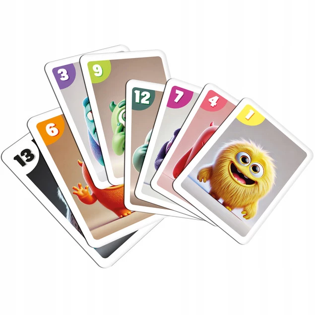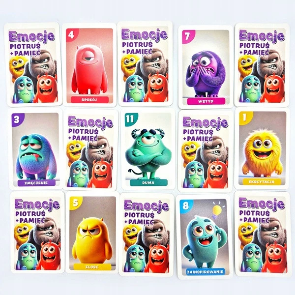 Zestaw zawiera 25 kart z wizerunkami zabawnych stworków będących personifikacją 13 różnych emocji.