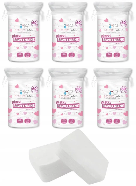 Płatki KOSMETYCZNE Dla Niemowląt BAWEŁNIANE Waciki Bocioland 6pak 6x60szt