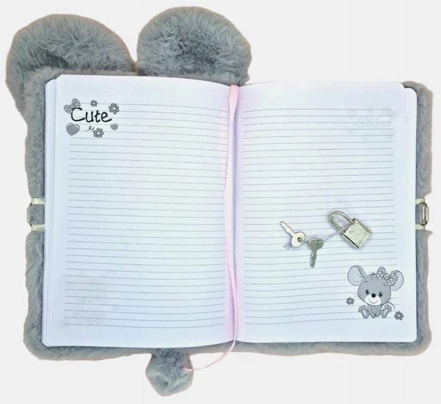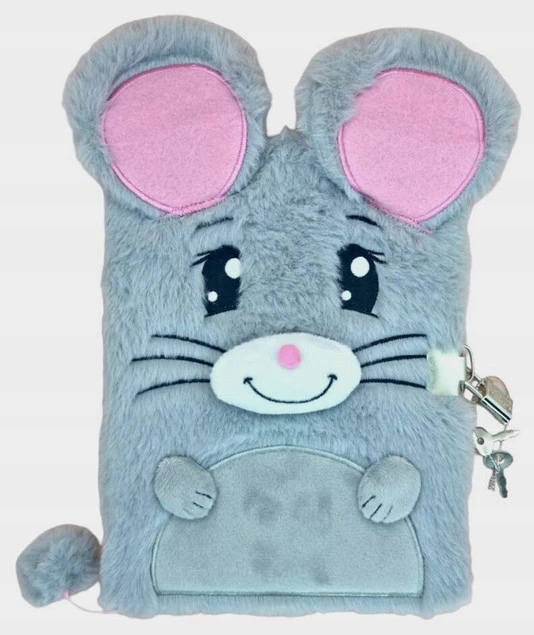Pluszowy Pamiętnik Z Kłódką Włochacz Szara MYSZKA Mysz A5 96k Majewski