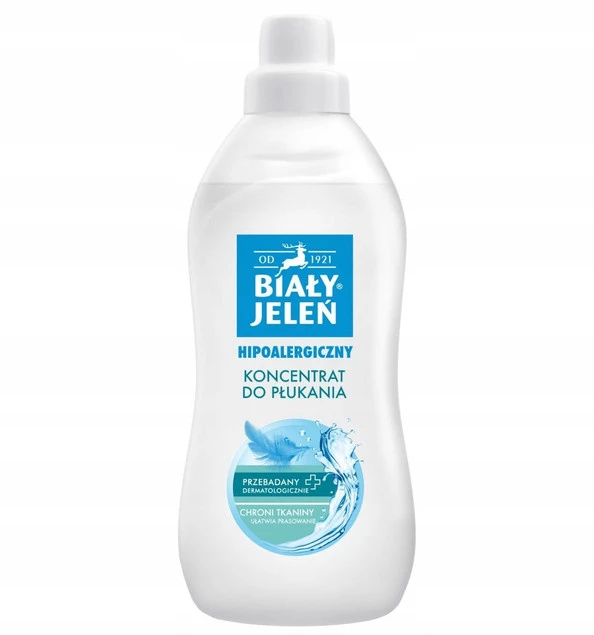 Hipoalergiczny koncentrat do płukania od marki Biały Jeleń. Odpowiedni dla osób o wrażliwej skórze, skłonnej do alergii.