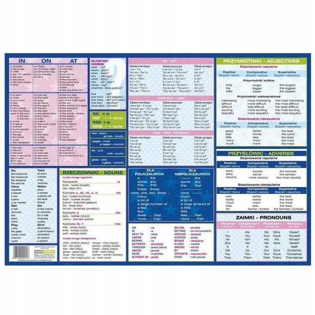 Złóż zapytanie o cenę hurtową produktu |Podkład Na Biurko Obustronny GRAMATYKA JĘZYKA ANGIELSKIEGO Derform