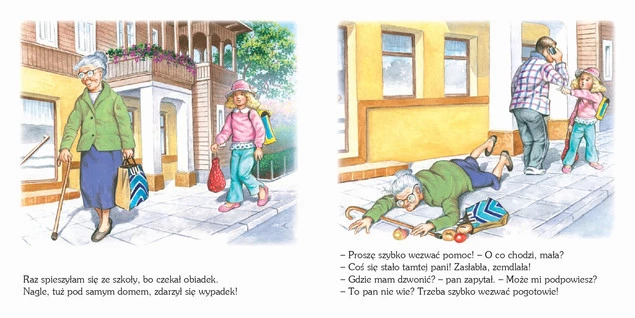 - Kartonowa książeczka „Pogotowie” Wiesława Drabika z serii Wiersze dla Malucha – krótki wierszyk, barwne ilustracje i idealny format dla małych rączek.