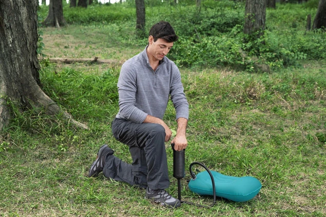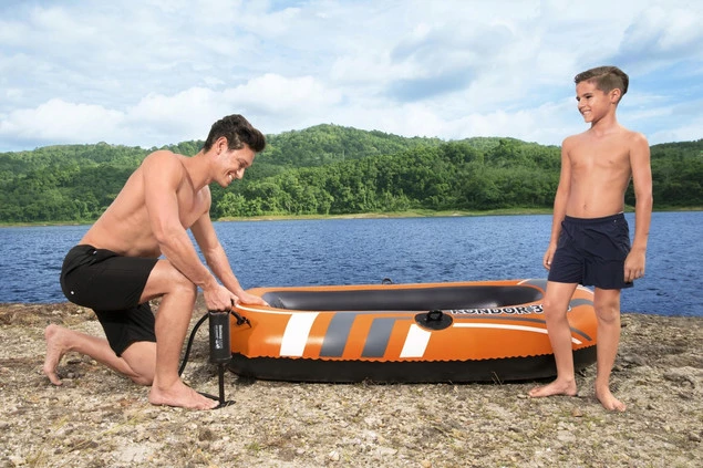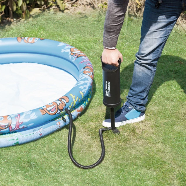 Pompka ręczna to urządzenie pozwalające w szybki sposób napompować dowolny obiekt wymagający powietrza. Dzięki trzem wymiennym końcówkom można podłączyć elastyczny wąż do materaca, piłki, zabawki dmuchanej i innych tego typu przedmiotów. Efektywność gwarantuje specjalne rozwiązanie, sprawiające, że zarówno ruch w górę, jak i w dół wtłacza powietrze o pojemności 860 cm3. Pracę ułatwia również ergonomiczny uchwyt ręczny. Producentem pompki jest znana z wysokiej jakości urządzeń firma Bestway.