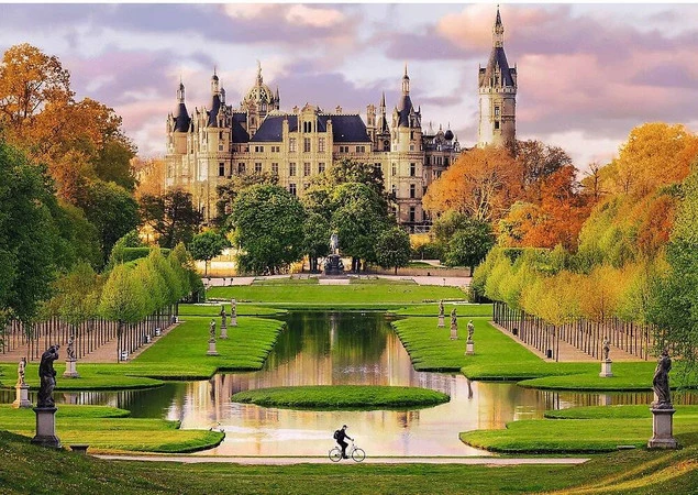 Puzzle Zamek w Schwerinie, Niemcy przedstawiają siedzibę parlamentu Meklemburgii-Pomorza Przedniego. Po ich ułożeniu powstanie obraz o wymiarach 683x480 mm.