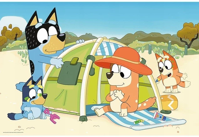 Puzzle 24 maxi składające się z bardzo dużych elementów, zaprojektowaną z myślą o wszystkich fanach i fankach serialu animowanego Bluey.