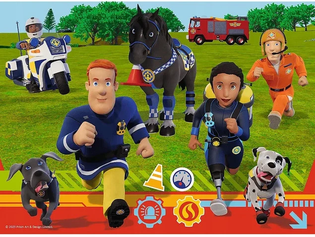 Gotowi do pomocy to puzzle składające się z 30 elementów, zaprojektowane specjalnie z myślą o małych fanach Strażaka Sama. Po ułożeniu układanki powstanie obrazek o wymiarach 270x200 mm.