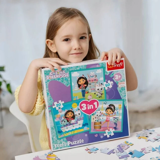 Złóż zapytanie o cenę hurtową produktu |Puzzle 3w1 Układanka KOCI DOMEK GABI Aktywności Gabi 3+ Trefl 34871