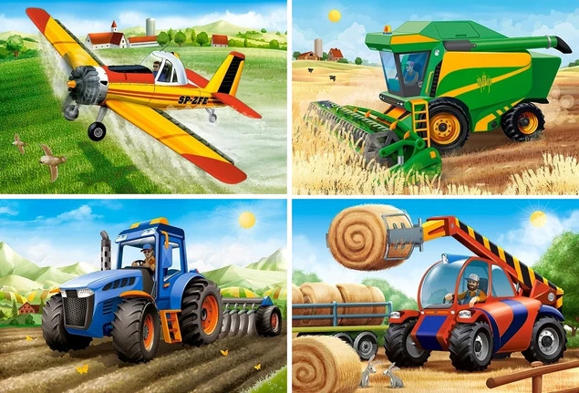Puzzle 4w1 Układanka Wieś POJAZDY ROLNE Traktor Samolot Pole 4+ Castorland