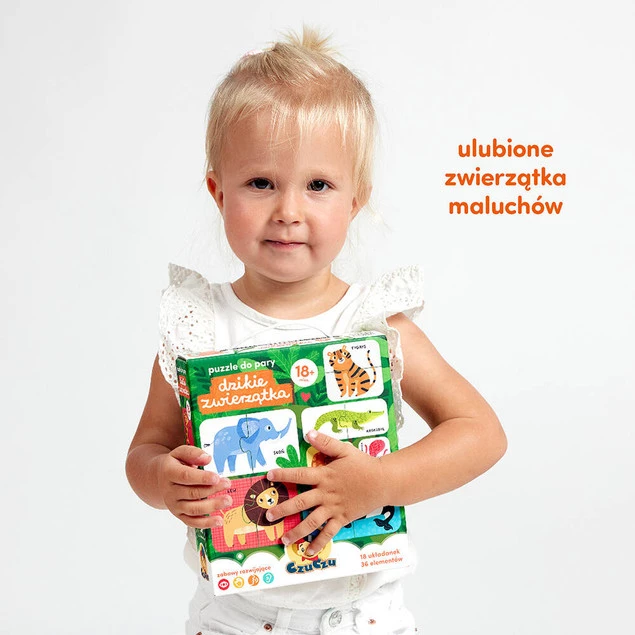Mamy pomysły na odkrywanie dalekiego świata z najmłodszymi układaczem – poznajcie Puzzle do pary Dzikie zwierzątka! Każda z 18 układanek składa się z 2 puzzli i przedstawia charakterystyczne zwierzęta ze świata: są tu mieszkańcy sawanny, oceanów i dżungli, a nawet odległej Australii. Wykorzystajcie puzzle do mnóstwa wesołych zabaw.