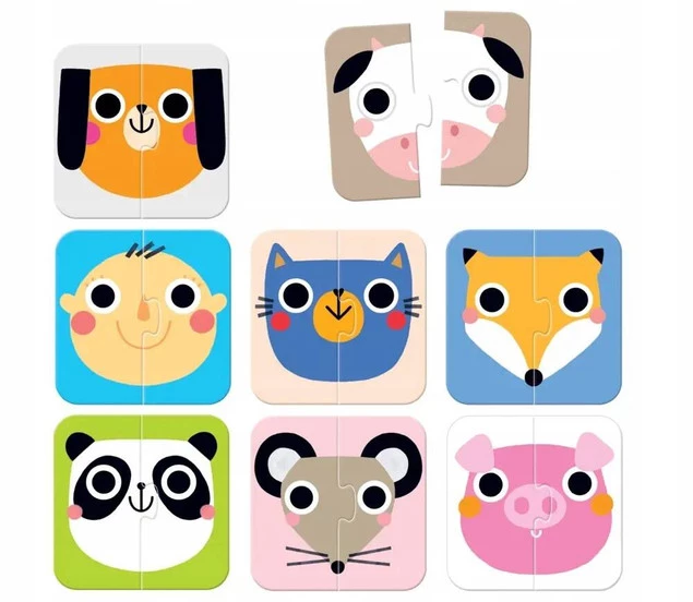 Czas rozpocząć puzzlową przygodę! Dopasujcie do siebie 2 połówki i sprawdźcie, czyja to buzia. Elementy są duże i pasują do małych rączek, a dzięki precyzyjnemu wykonaniu ułożone puzzle nie rozłączają się. Przyjazne ilustracje o stonowanej kolorystyce i poziomie szczegółowości zachęcają maluchy do zabawy.