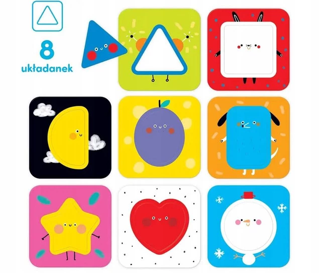 Edukacyjny zestaw sprawdzi się jako pierwszy puzzlowy sorter kształtów dla malucha. Składa się z dużych tabliczek z wyjmowanymi elementami. Zabawa polega na dopasowywaniu wyjmowanych kolorowych elementów o różnych kształtach. Formę puzzli i kolorowe ilustracje dopasowaliśmy do wieku maluchów. Układanie puzzli to edukacyjna i wszechstronnie rozwijająca zabawa.