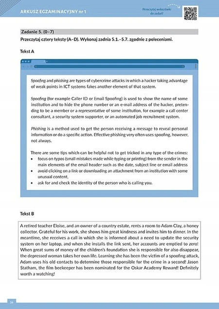 Ponadto, po zeskanowaniu kodów QR, uzyskasz dostęp do dodatkowych materiałów, takich jak nagrania i transkrypcje, klucz rozwiązań do każdego arkusza. Arkusze przygotowane przez doświadczonych nauczycieli języka angielskiego, związanych z Wydawnictwem GREG, to nieoceniona pomoc w przygotowaniach do egzaminu maturalnego.