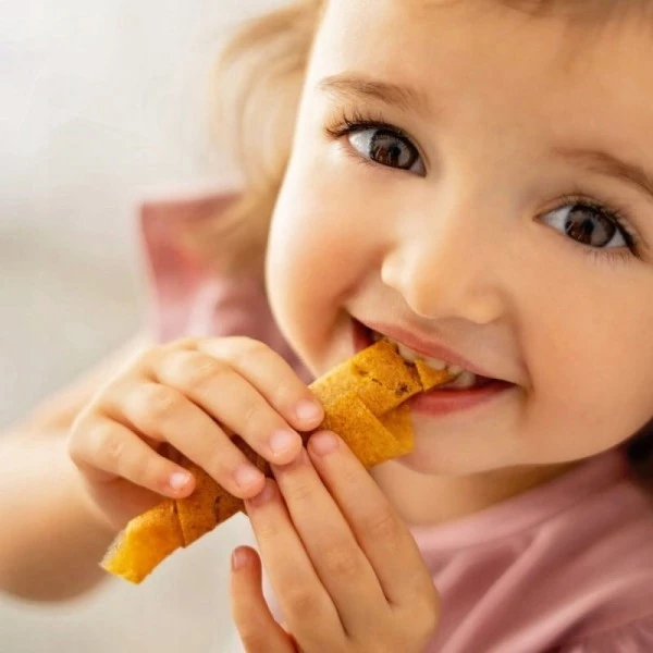 Dzięki swojej strukturze witaminowe rollsy™ w naturalny sposób wspierają trening żucia i gryzienia u dzieci. Gryzienie i żucie twardych pokarmów jest bardzo ważne już od początku rozszerzania diety dziecka.