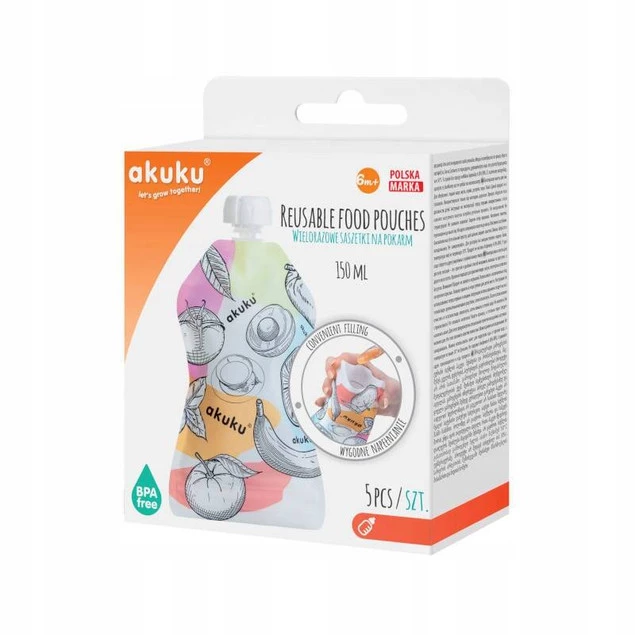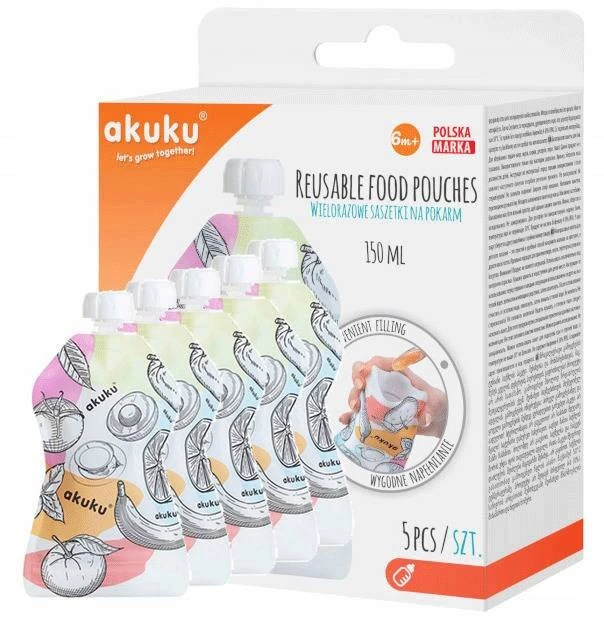 Saszetki Tubki Wielorazowe Na Pokarm 5 szt. Akuku