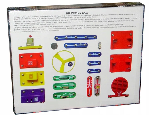 - Kompletny zestaw elementów, który pozwoli wejść w tajemniczy świat elektroniki i elektrotechniki.