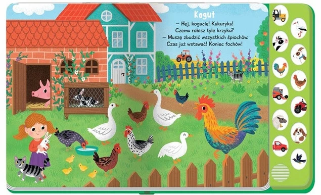 Autorką książeczki jest Grażyna Wasilewicz, która stworzyła wierszowane historyjki, dostosowane do percepcji najmłodszych. Kolorowe, wyraźne ilustracje oraz łatwe do zapamiętania rymowanki pomagają dziecku poznawać i rozumieć otaczający świat wiejski. Połączenie tekstu z żywymi dźwiękami sprzyja efektywnemu zapamiętywaniu i rozwija zainteresowanie naturą oraz techniką rolniczą.