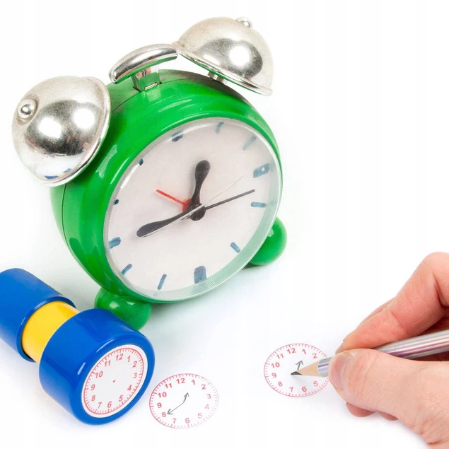 Stempel dla dzieci do nauki godzin na zegarze to niezastąpiona pomoc dydaktyczna nie tylko dla rodziców, ale i nauczycieli.