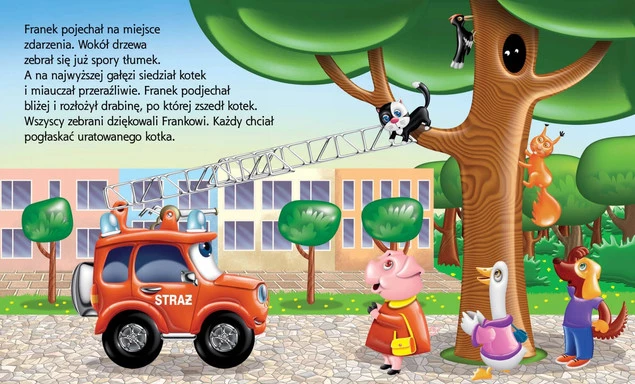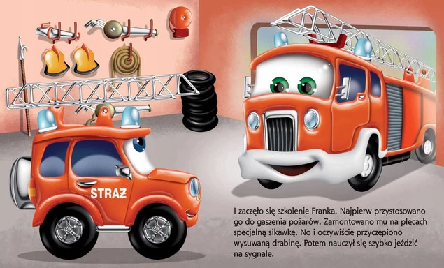 Poznaj przygody sympatycznego czerwonego samochodziku Franeka i jego przyjaciół w książce „Straż pożarna. Samochodzik Franek” autorstwa Elżbiety Wójcik. Franek pomaga wozowi strażackiemu Waldkowi w akcjach ratowniczych, ucząc dzieci jak działa straż pożarna i jak ważna jest odwaga i pomoc innym.