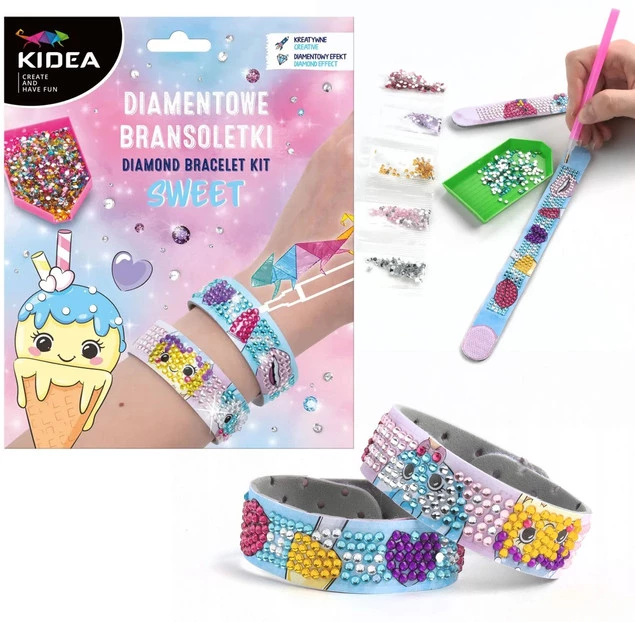 Stwórz DIAMENTOWE BRANSOLETKI Zestaw KREATYWNY DLA DZIEWCZYNKI 3+ Kidea
