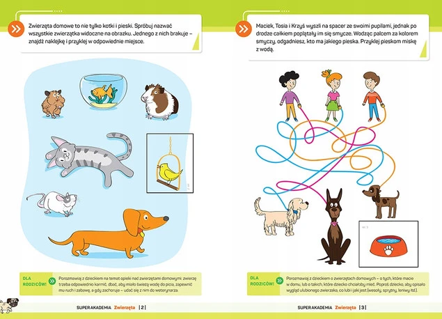 Dzięki niej Twoje dziecko rozwinie swoją wiedzę o świecie zwierząt, zrozumie ich potrzeby i nauczy się, jak można im pomóc. Pod każdym zadaniem przygotowaliśmy dla rodziców propozycję dodatkowej zabawy lub tematu do rozmowy z dzieckiem. To doskonała propozycja dla wszystkich małych miłośników zwierząt!