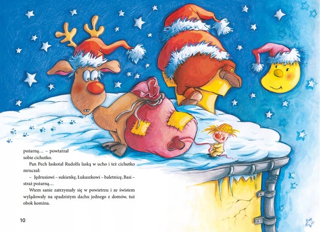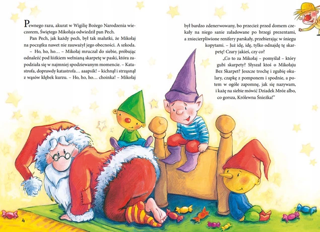 Ho, ho, ho… choinka! Co za pech, a właściwie pan Pech szepczący myląco do ucha: „Jędrusiowi – sukienkę, Basi – straż pożarną…”. Jak świat światem, takiego zamieszania nie było. Nie ma czasu do stracenia! Na prezenty czekają dzieci z odległych zakątków, a nawet smok – najgrzeczniejszy, o jakim słyszano.