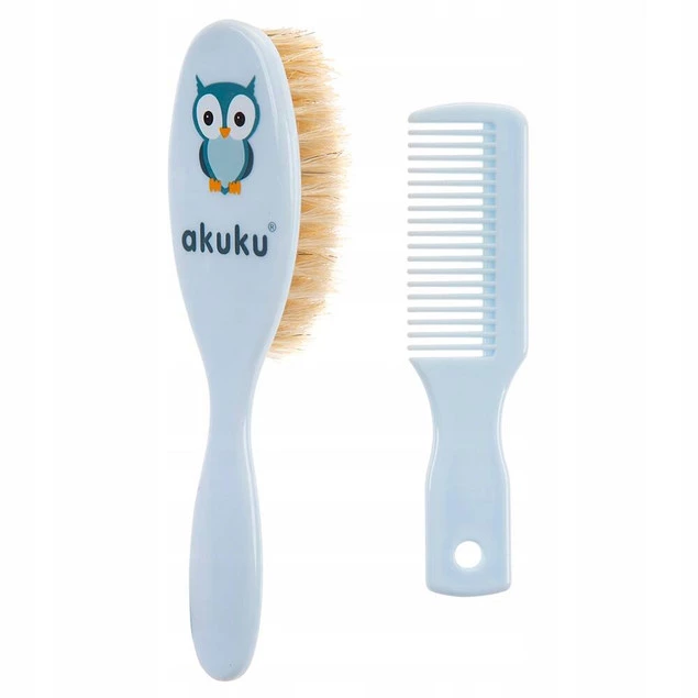 Szczotka Z Naturalnego Włosia + Grzebień Grzebyk Dla Niemowląt Akuku A0457