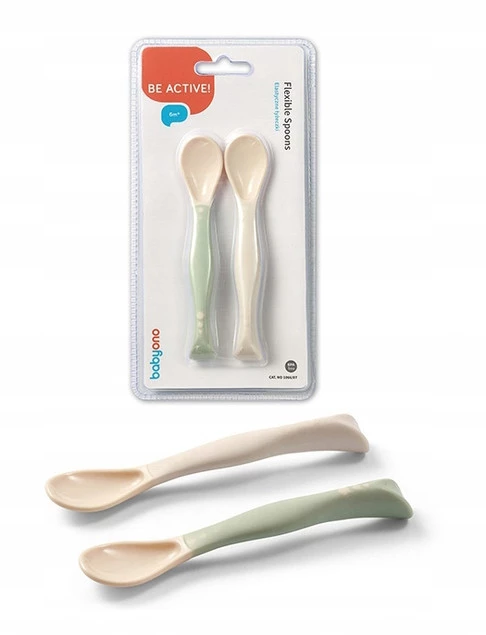 Sztućce ŁYŻECZKI Dla Niemowląt 6m Elastyczne Plastyczne x2 BABYONO 1066/07
