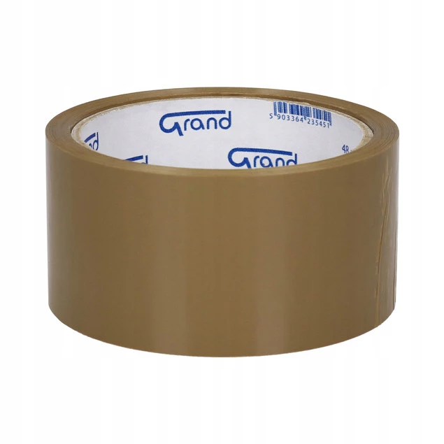 Brązowa taśma pakowa marki Grand. Wykonana z solidnego polipropylenu z emulsyjnym klejem akrylowym. Wysokie właściwości przyczepne sprawiają, że świetnie nadaje się ona do zaklejania kartonów o dużym zakresie wag.
